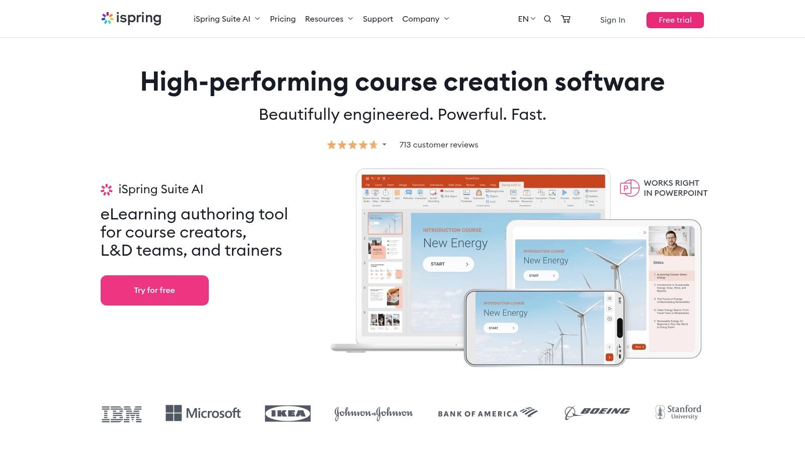 | iSpring Suite | PowerPoint integration, video studio, sims | ★★★★☆ | 💰 License/quote; trial | Teams authoring in PowerPoint | Rapid SCORM exports and dialogue simulations |